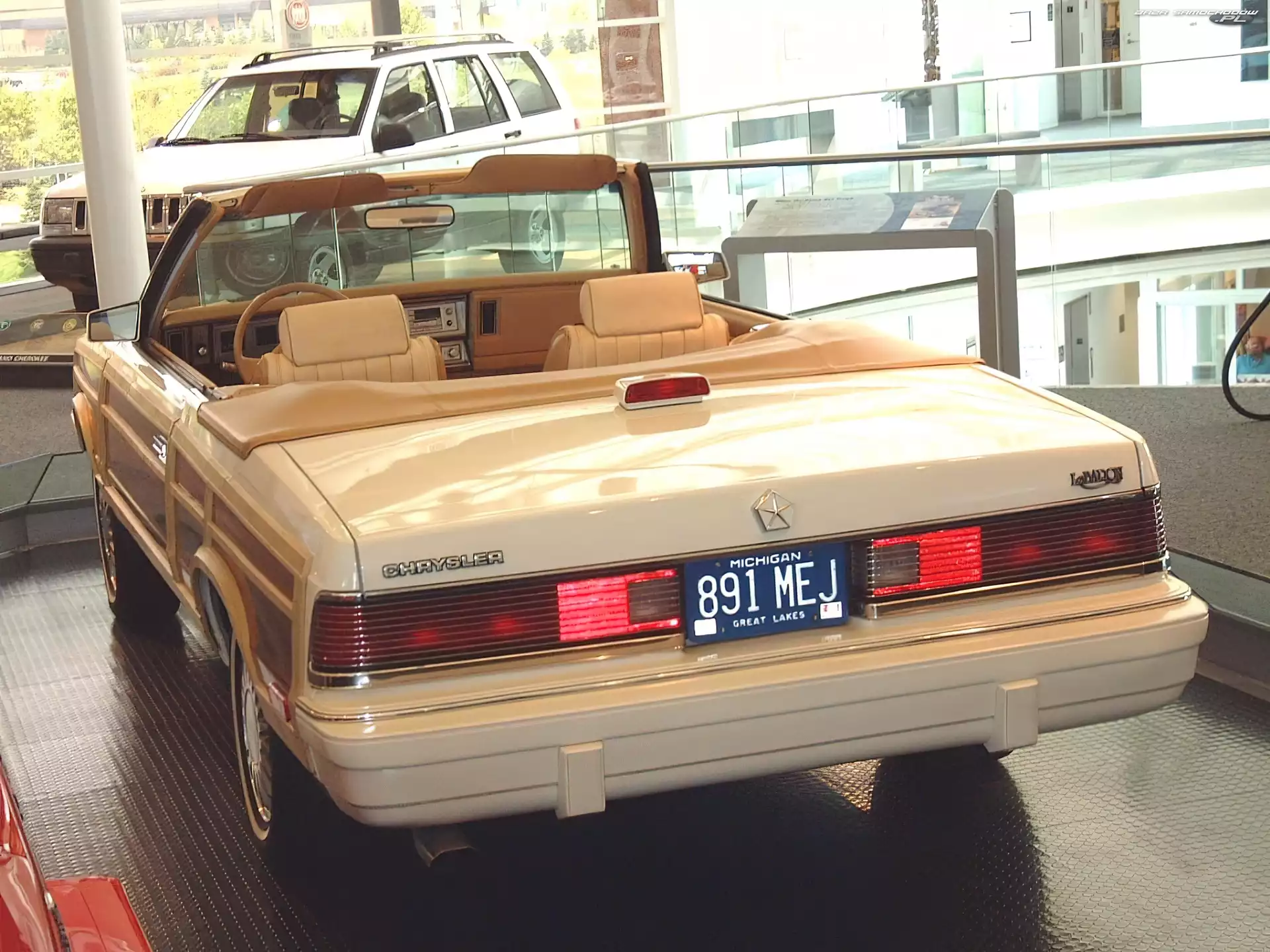 Kabriolet, Chrysler Le Baron Chrysler Le Baron, Kabriolet Le Baron, Emblemat Chrysler Le Baron, Salon Chrysler Le Baron, Wnętrze Chrysler Le Baron, Drewniane, Boczne, Panele Alufelgi, Chrysler Le Baron, Szprychowe