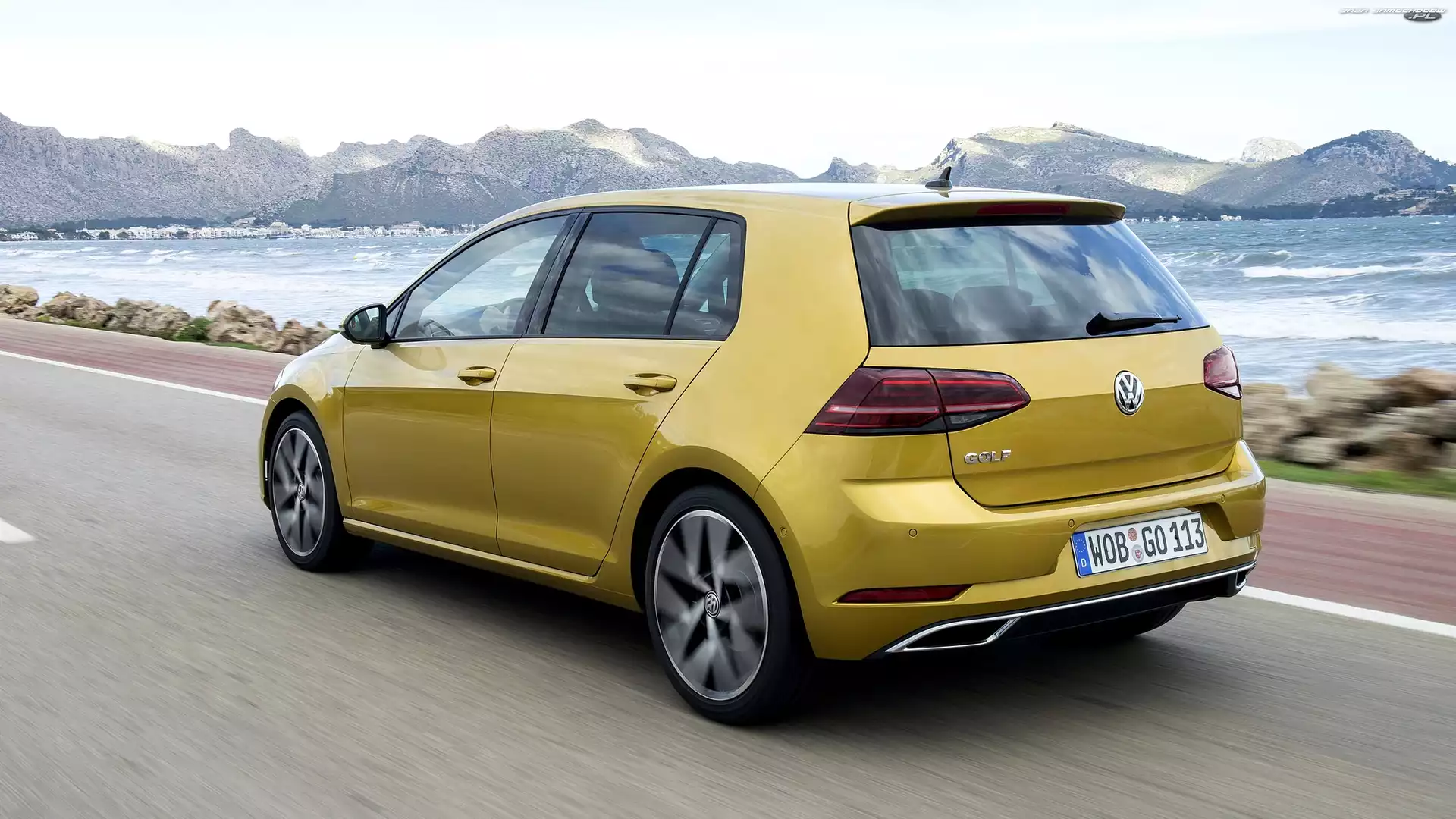 Facelift, Żółty, Jezioro, Góry, Volkswagen Golf 7, 2017- Zdjęcia samochodów